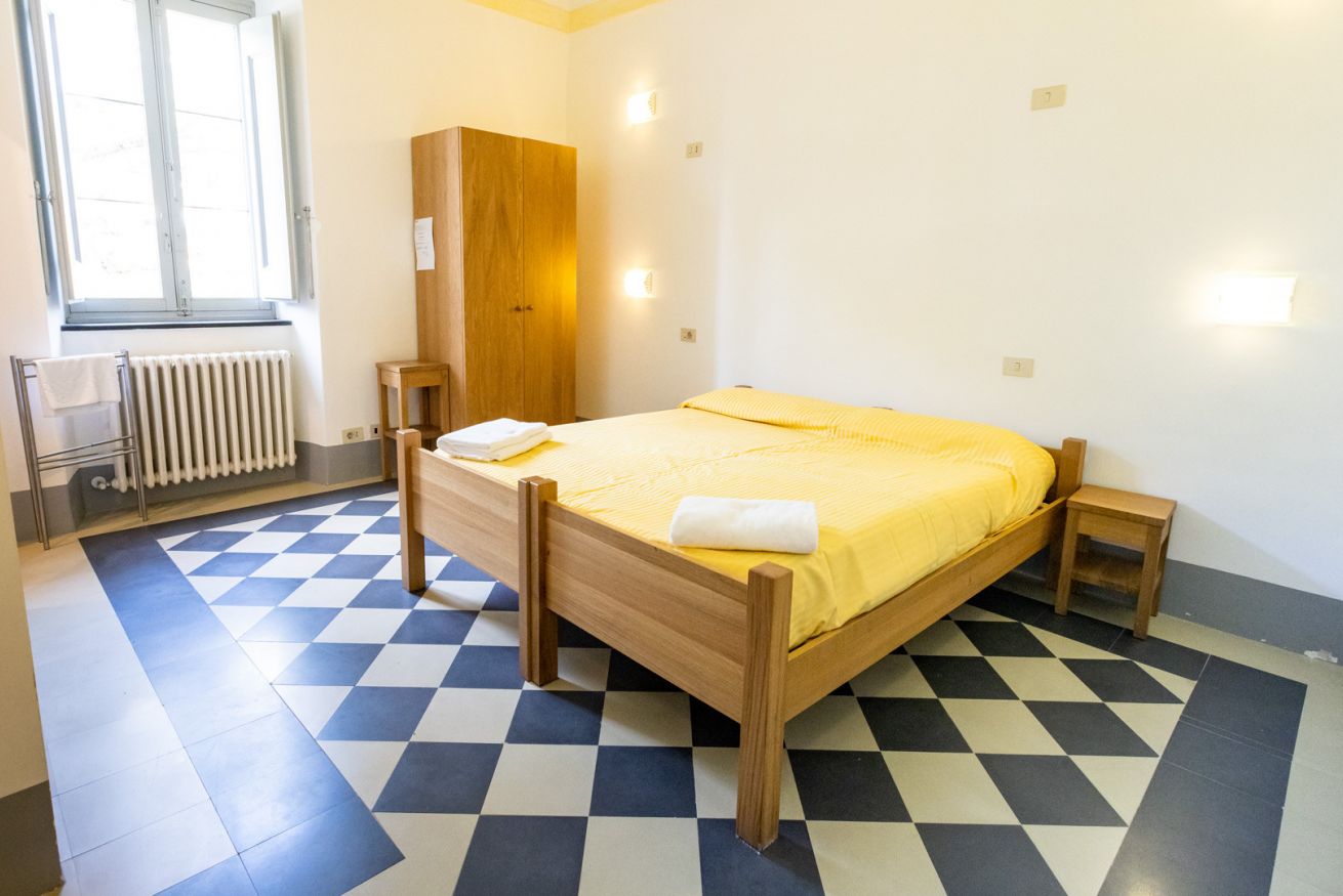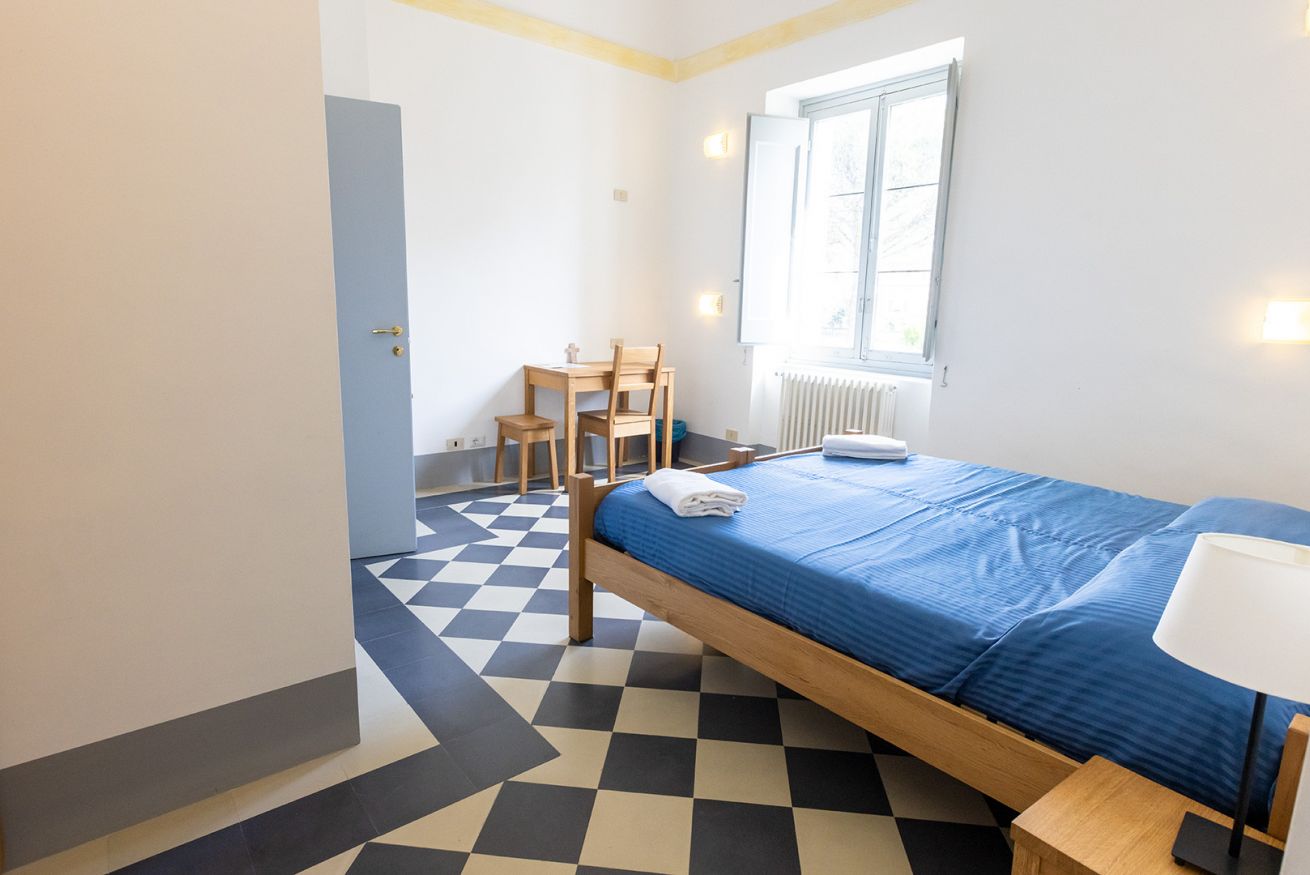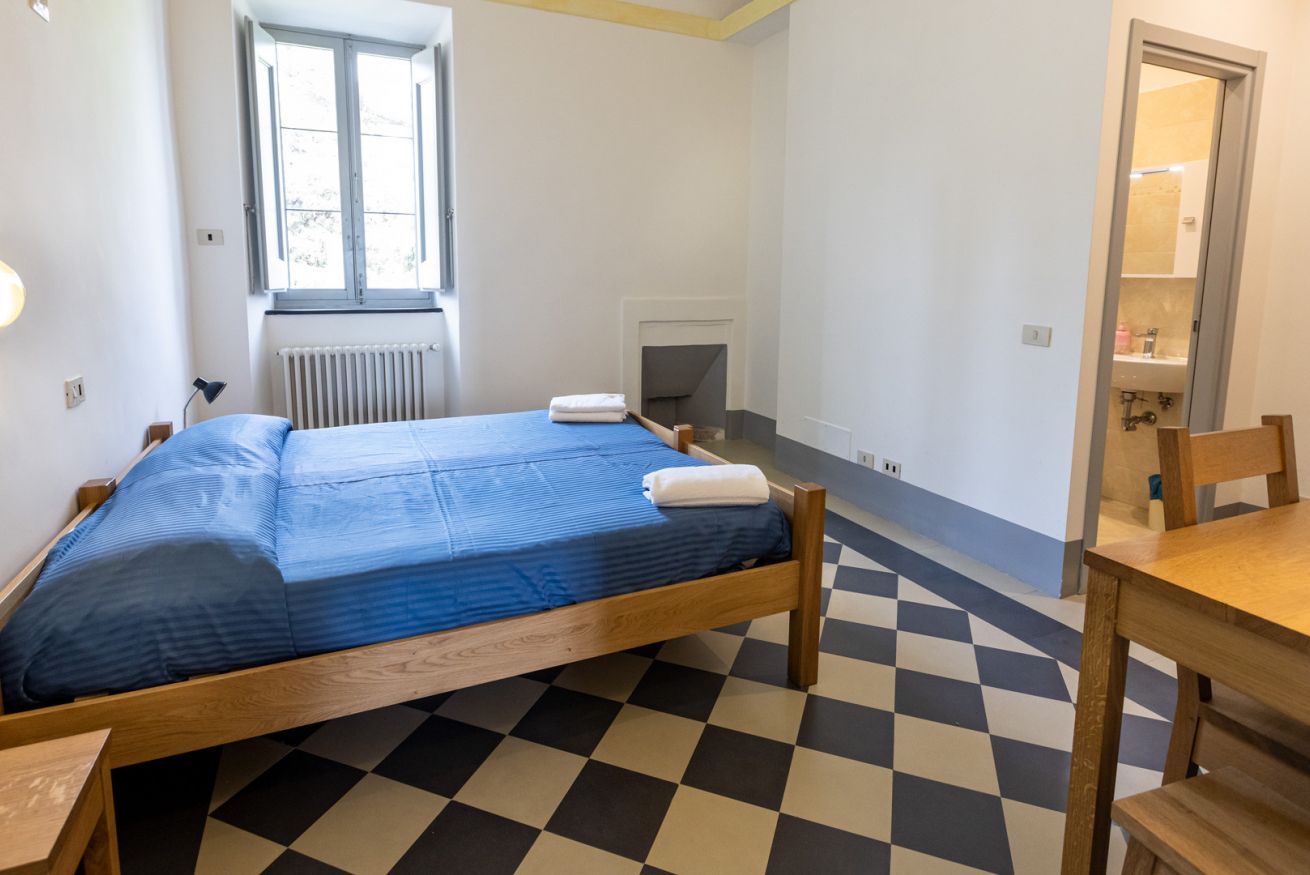 Chambre avec lit matrimonial ou deux lits simples et salle de bain dans la chambre.