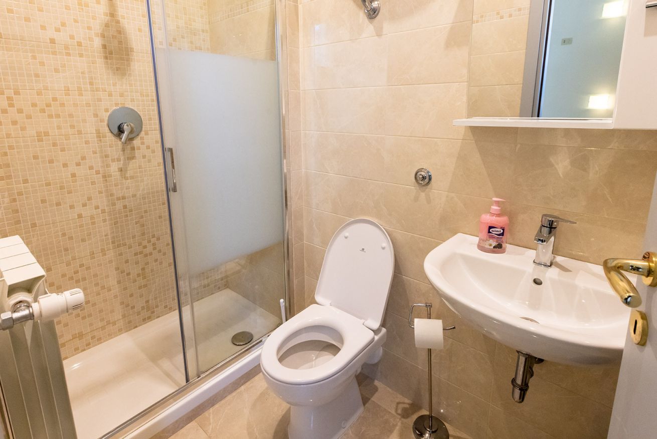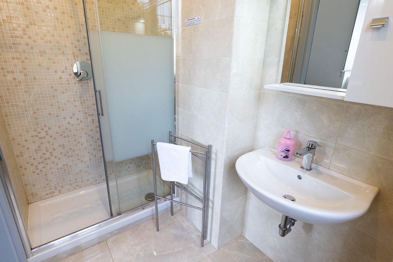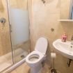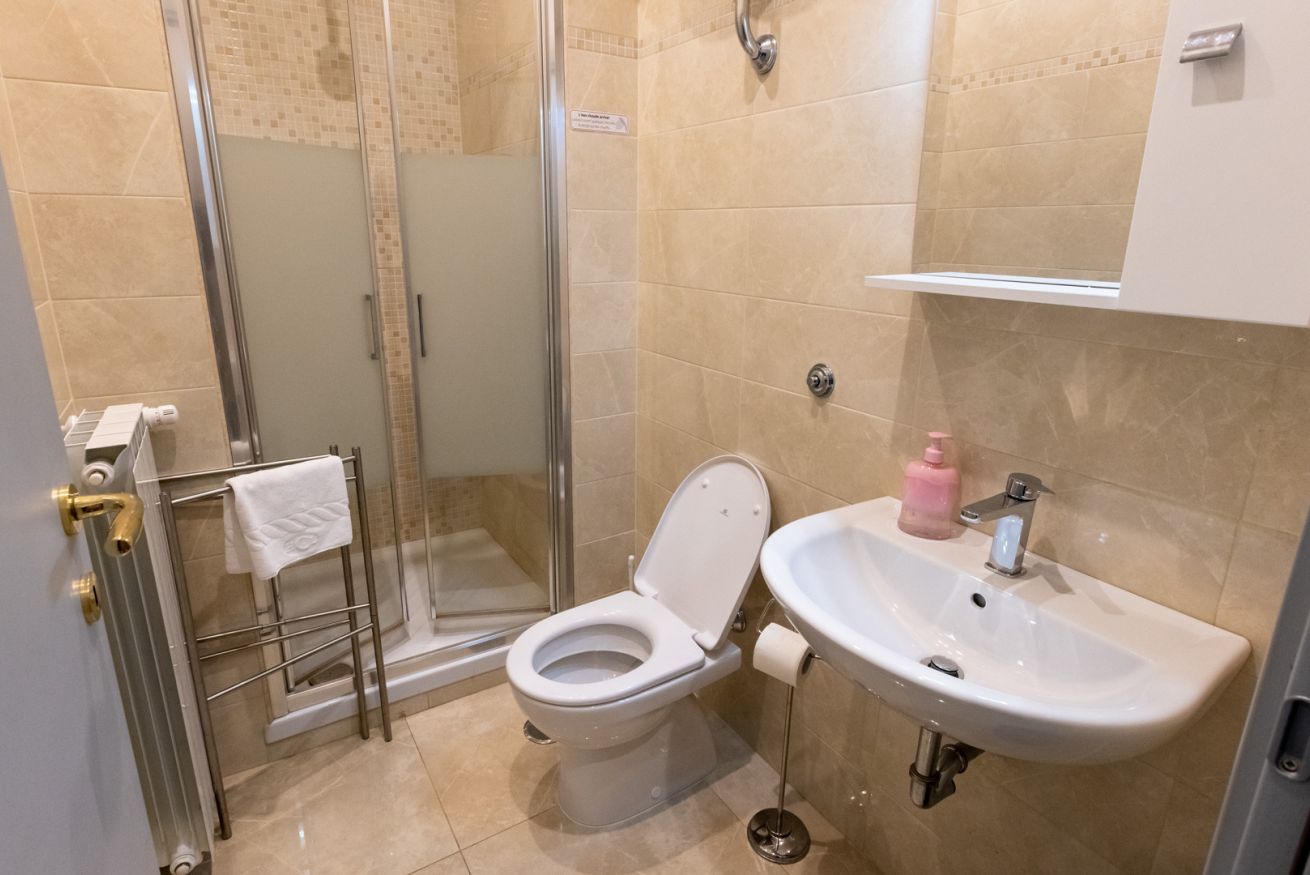 Chambre avec lit matrimonial ou deux lits simples et salle de bain dans la chambre.